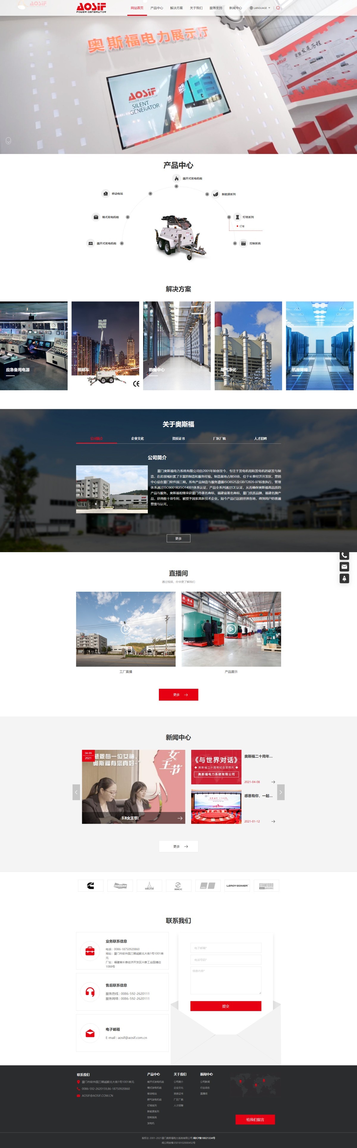 作为专业的发电机组制造商,奥斯福注重产品的研发创新和服务品质,长期与康明斯、珀金斯、斗山、上柴动力、无锡万迪、利莱森玛、斯坦福、马拉松等国际国内著名企业保持密切战略合作关系。产品范围包括柴油发电机组5KVA~5000KVA;燃气发电机组25KVA~1500KVA;静音型、集装箱式发电机组;拖车、车载式移动电站;控制系统包括自动控制屏、并机并网系统、ATS自动电源切换柜,除此奥斯福可以在标准产品基础上提供产品定制和电站整体解决方案,最大限度满足市场需求。着眼全球,打造国际品牌,持续不断为客户创造价值是所有奥斯福人不变的承诺和永恒的追求。
